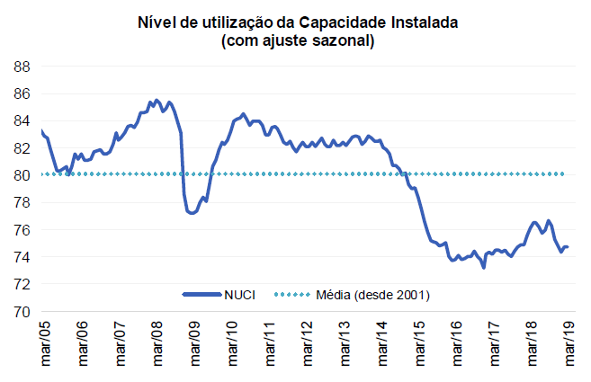 O Nível de Utilização da Capacidade Instalada (NUCI) dessazonalizado ficou estável em 74,7% entre os meses
