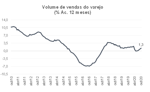 - Os próximos movimentos do varejo ainda estão em função do programa de vacinação no início de 2021, das oscilações no mercado internacional e do impacto do fim do auxílio emergencial datado para o final do ano.